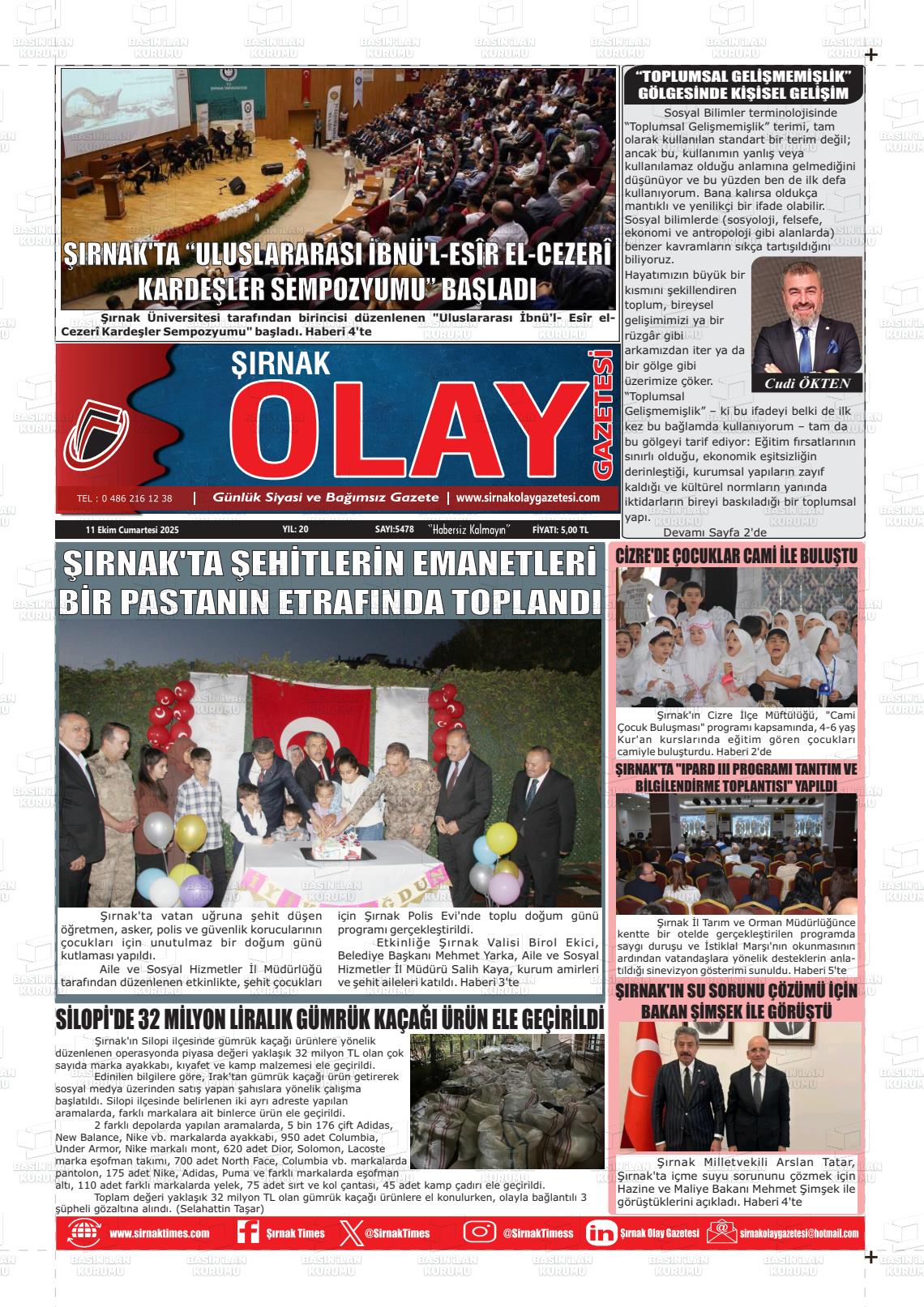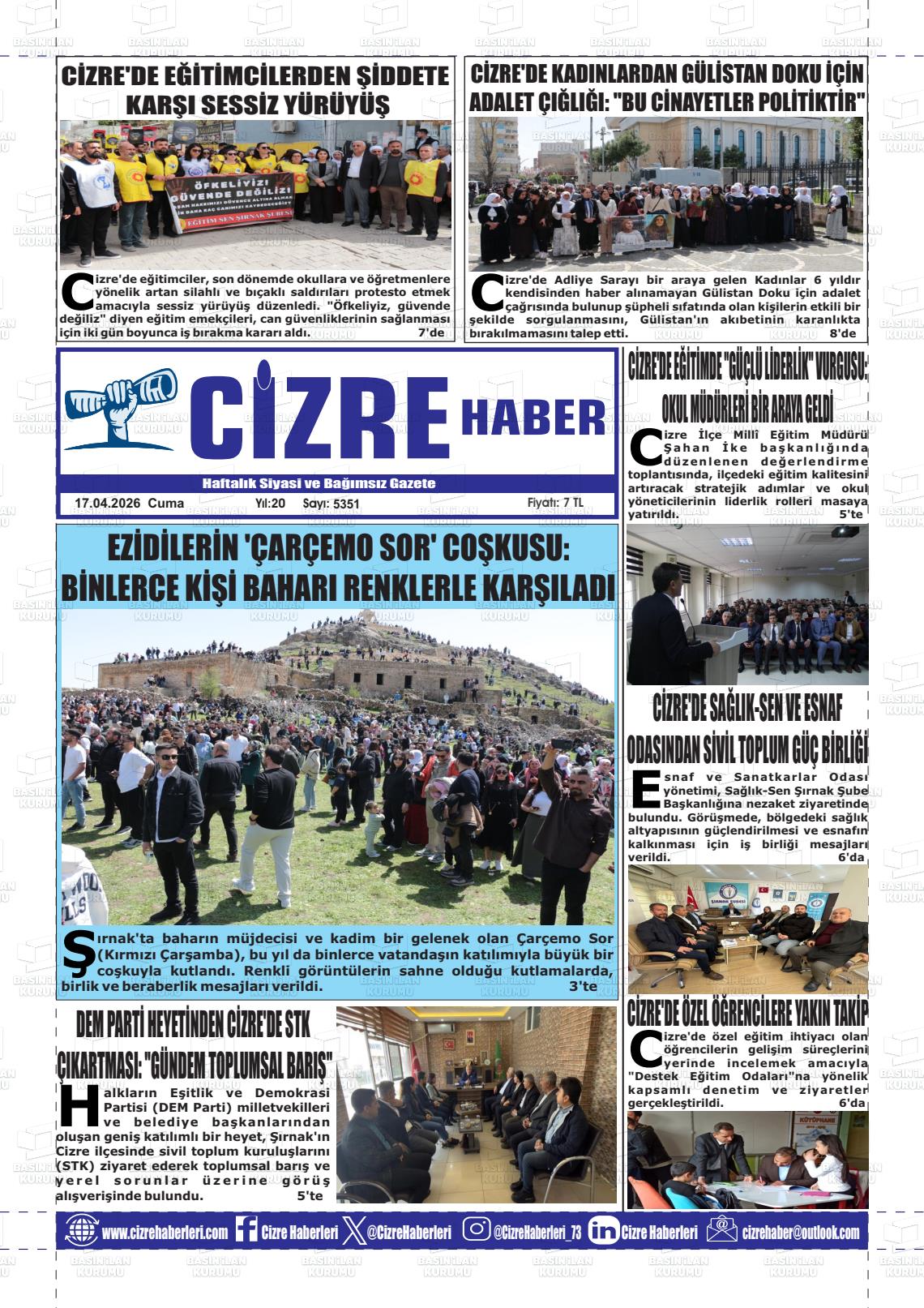 Şırnak Yerel Gazeteleri 17 Nisan 2026, Cuma Günü Manşeti