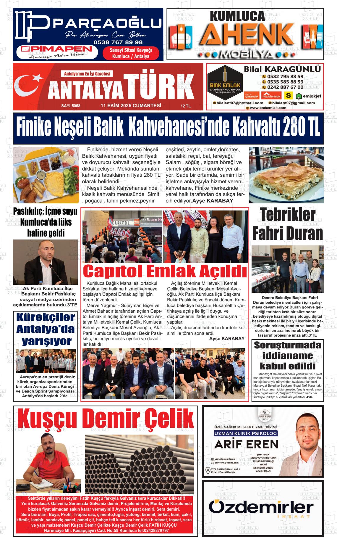 Antalya Yerel Gazeteleri 17 Nisan 2026, Cuma Günü Manşeti