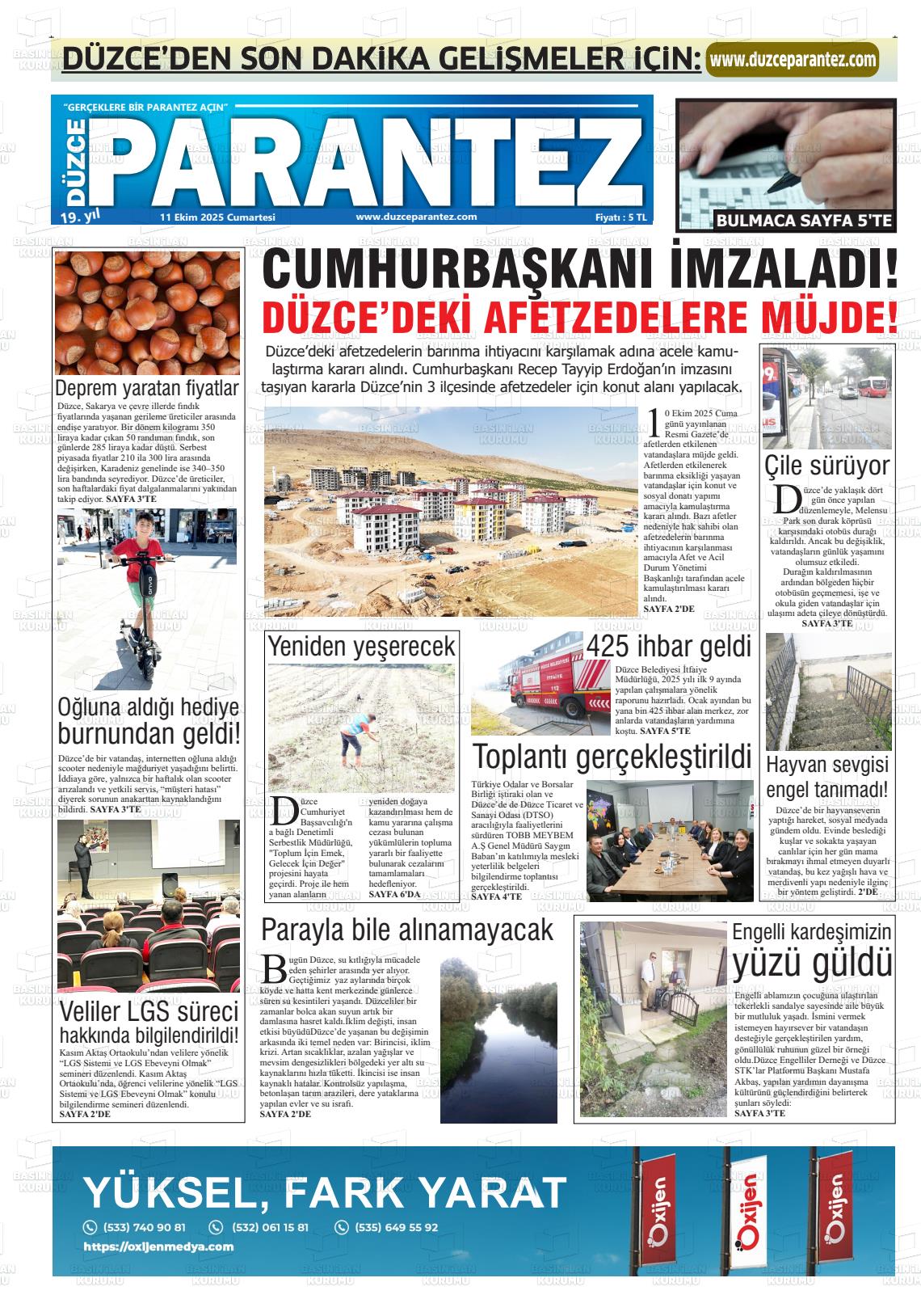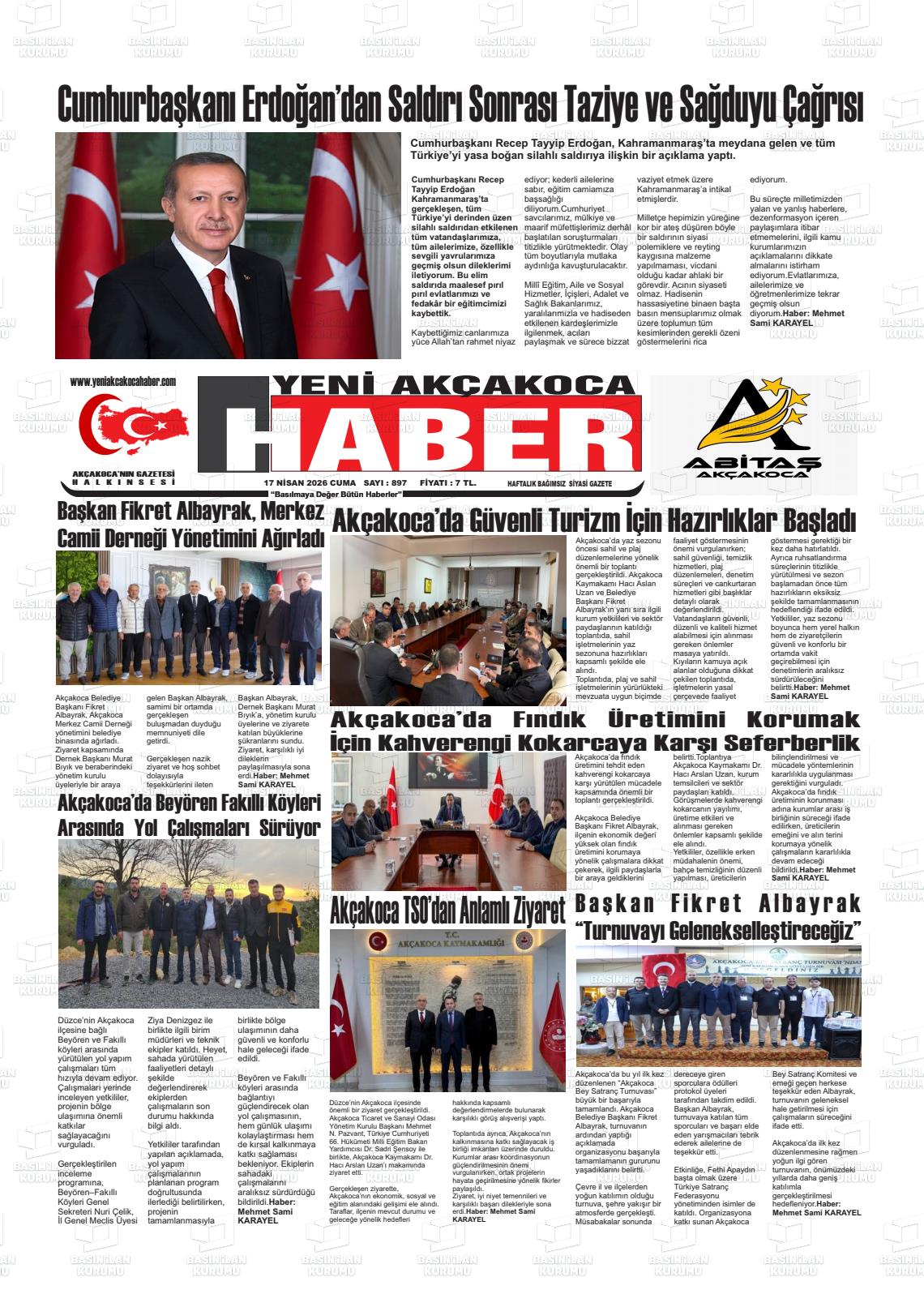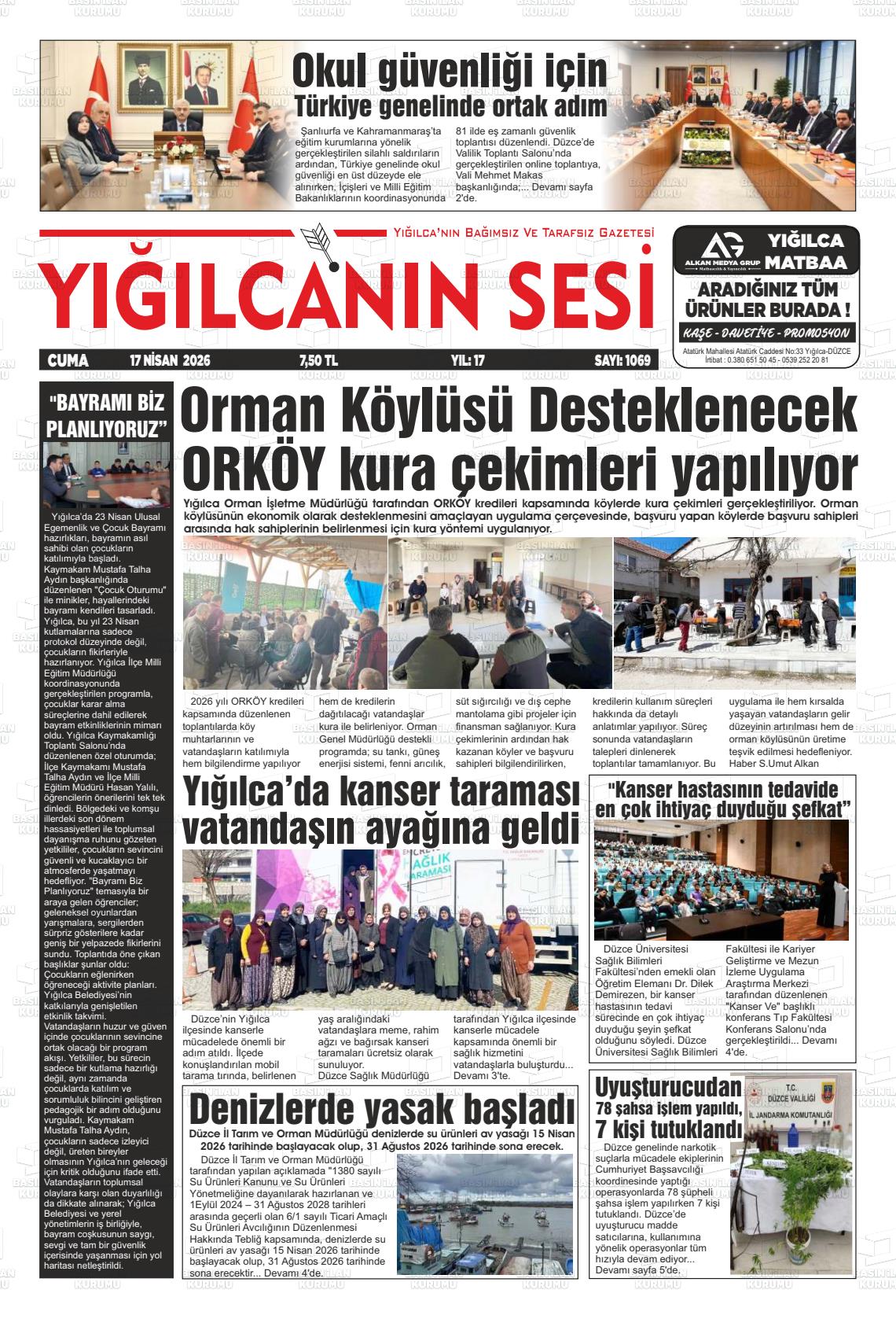 Düzce Yerel Gazeteleri 17 Nisan 2026, Cuma Günü Manşeti