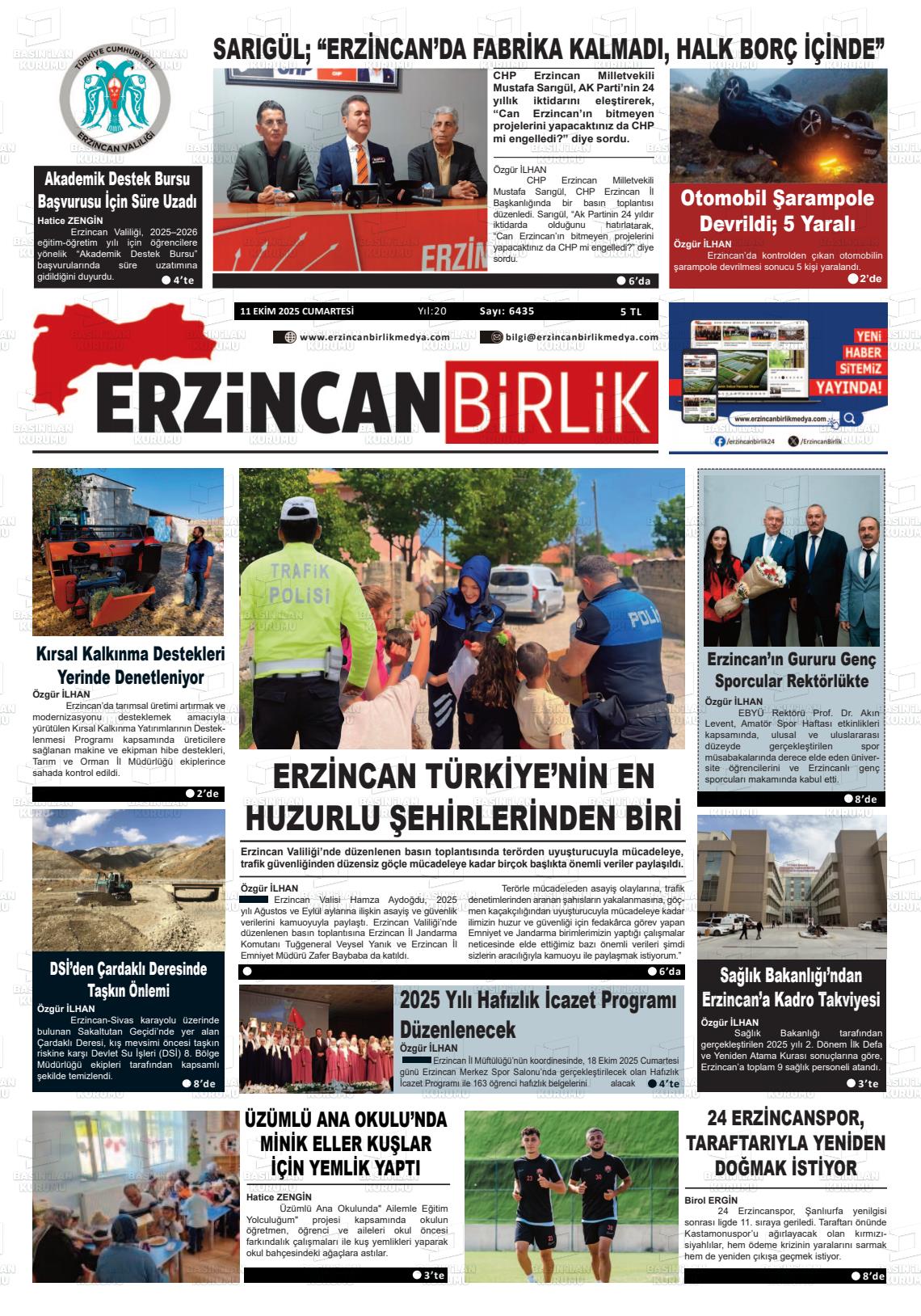 Erzİncan Yerel Gazeteleri 17 Nisan 2026, Cuma Günü Manşeti