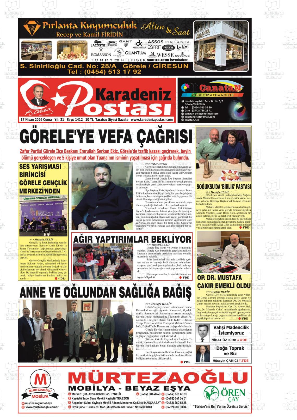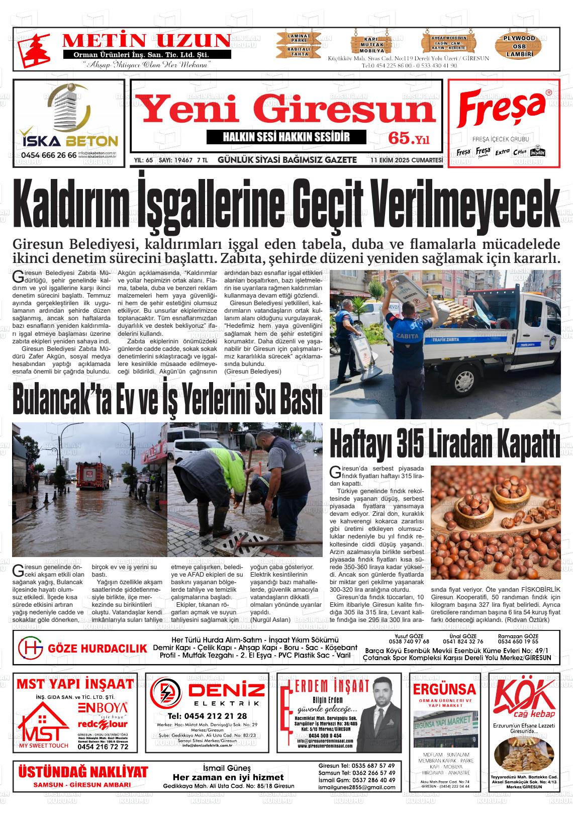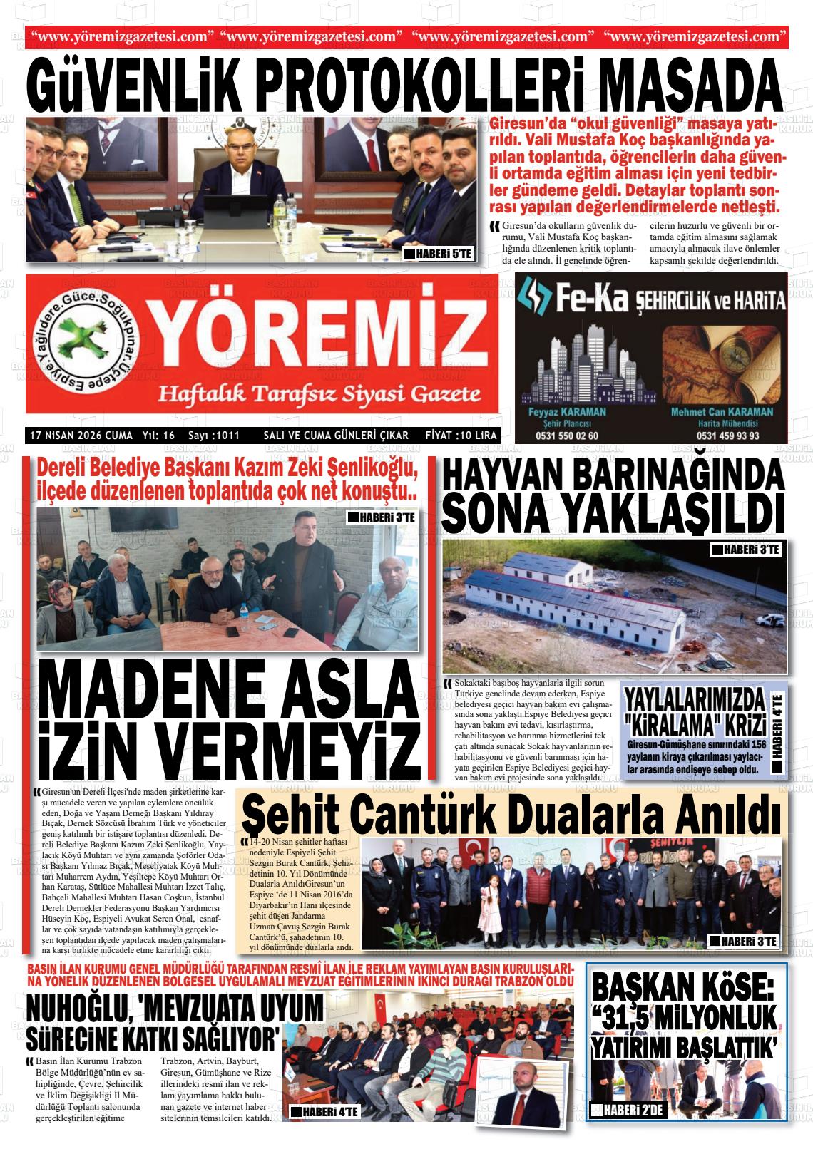 Gİresun Yerel Gazeteleri 17 Nisan 2026, Cuma Günü Manşeti