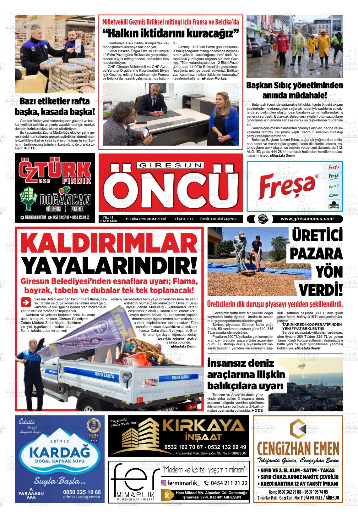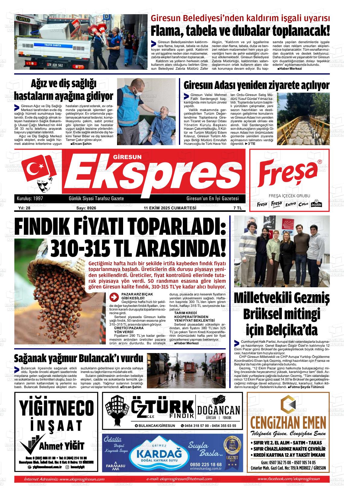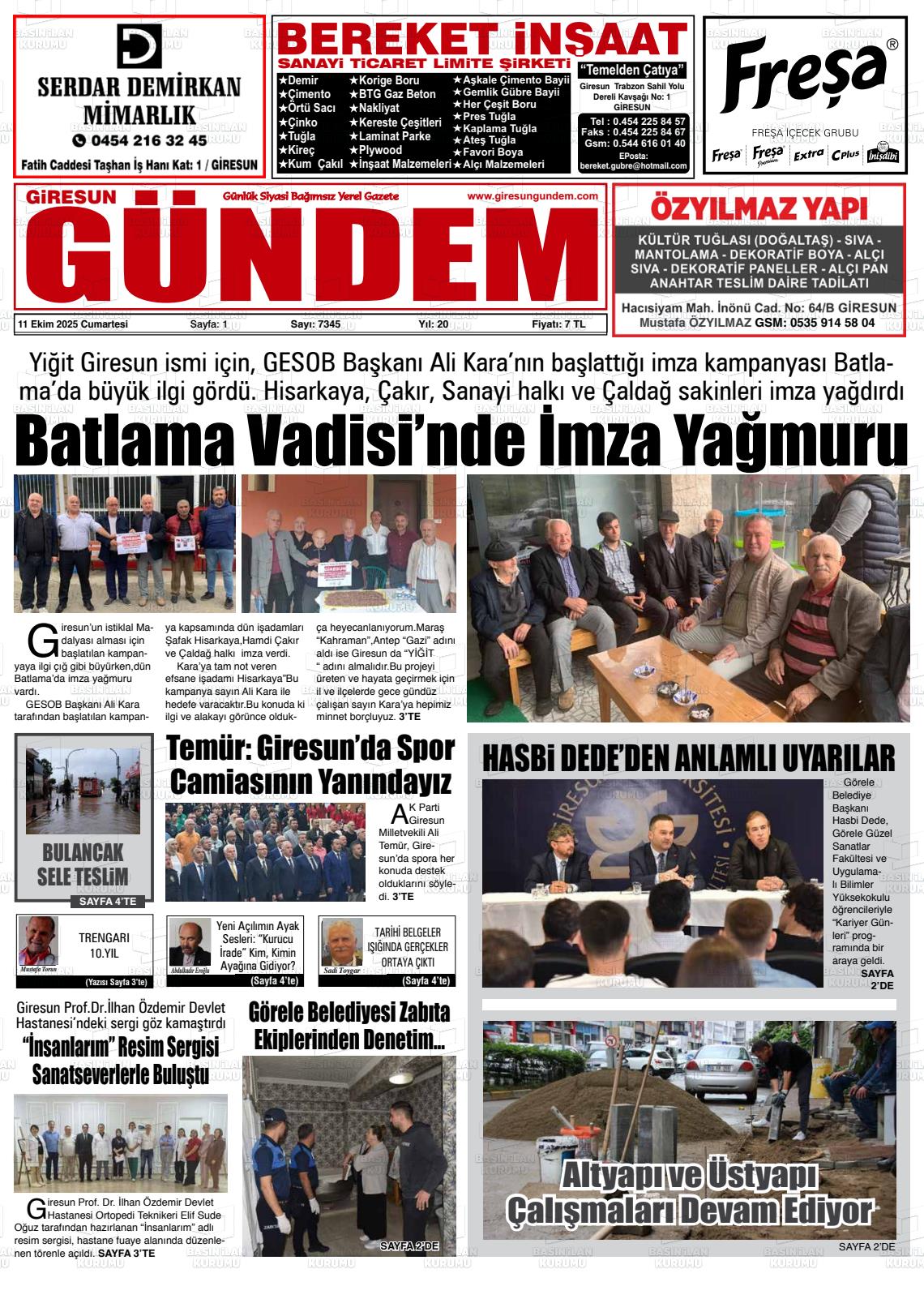 Gİresun Yerel Gazeteleri 17 Nisan 2026, Cuma Günü Manşeti