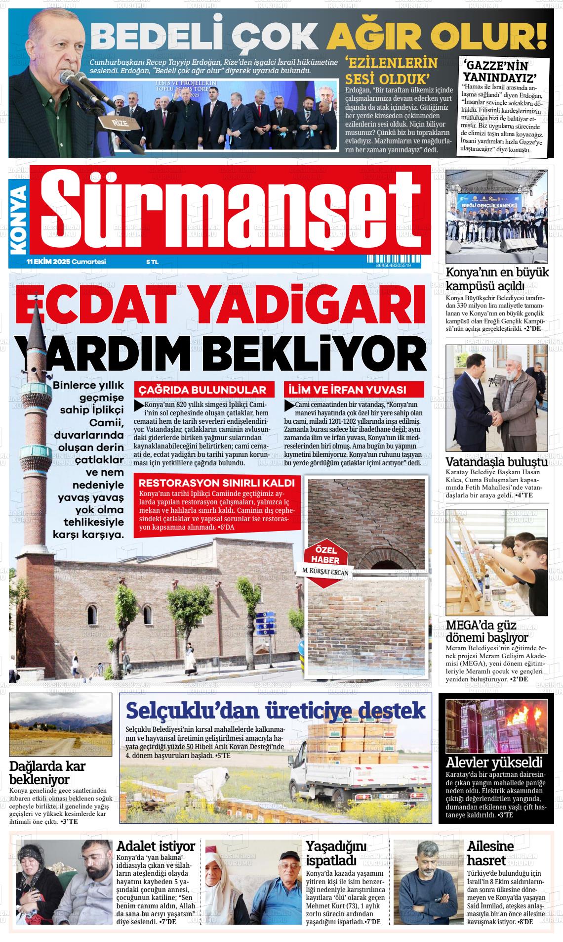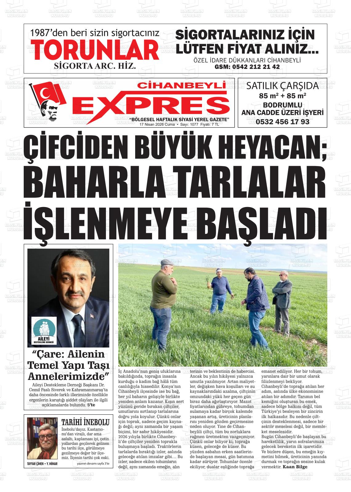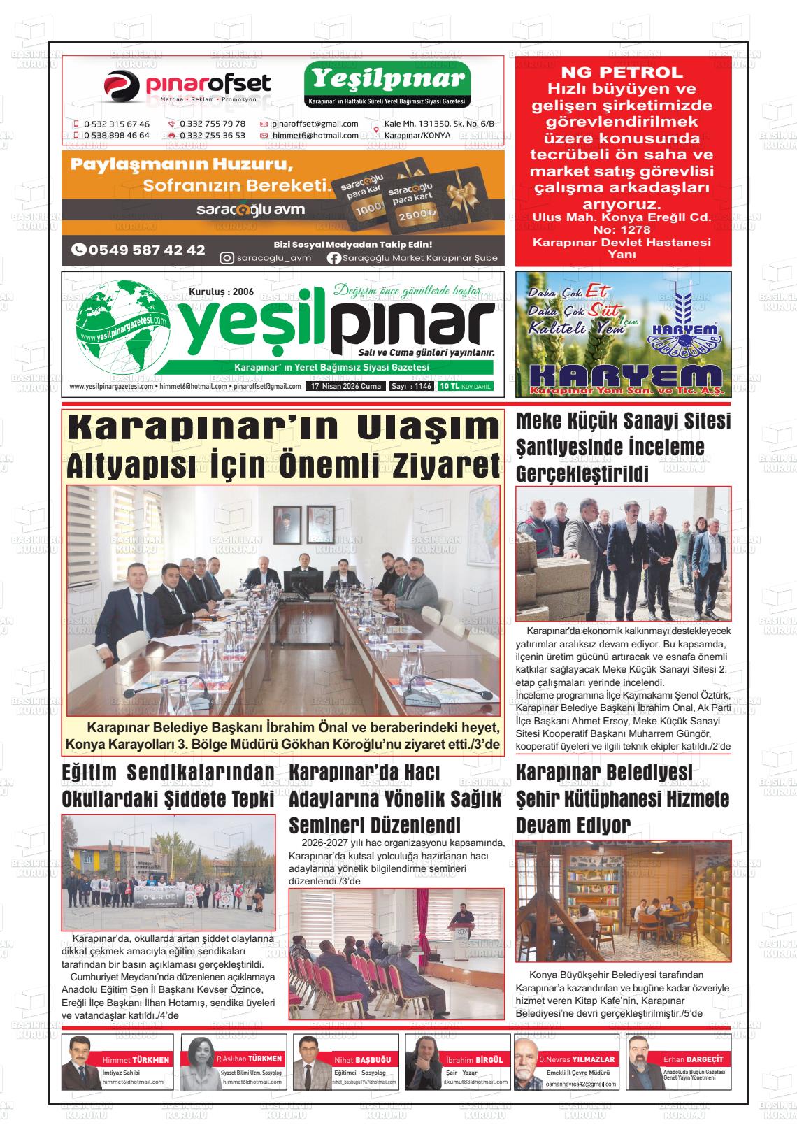Konya Yerel Gazeteleri 17 Nisan 2026, Cuma Günü Manşeti