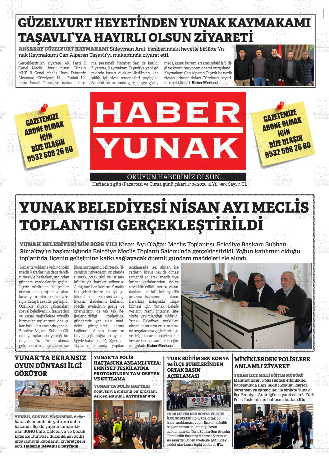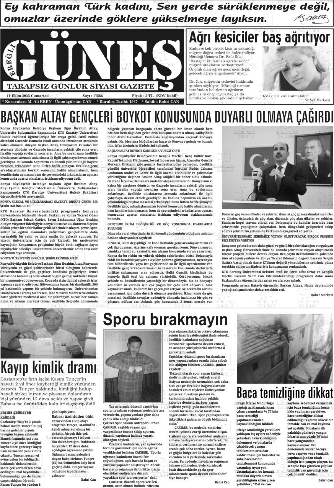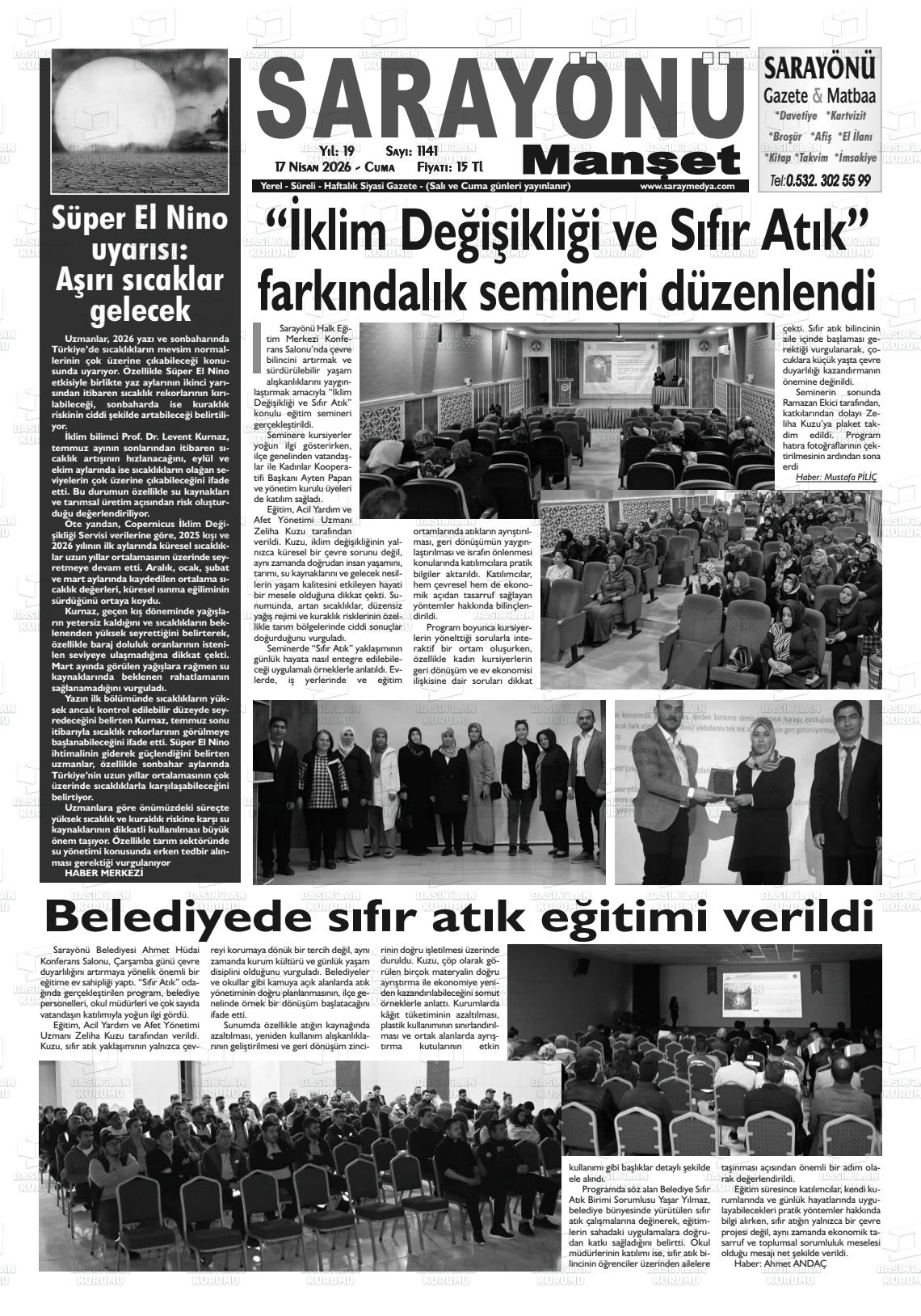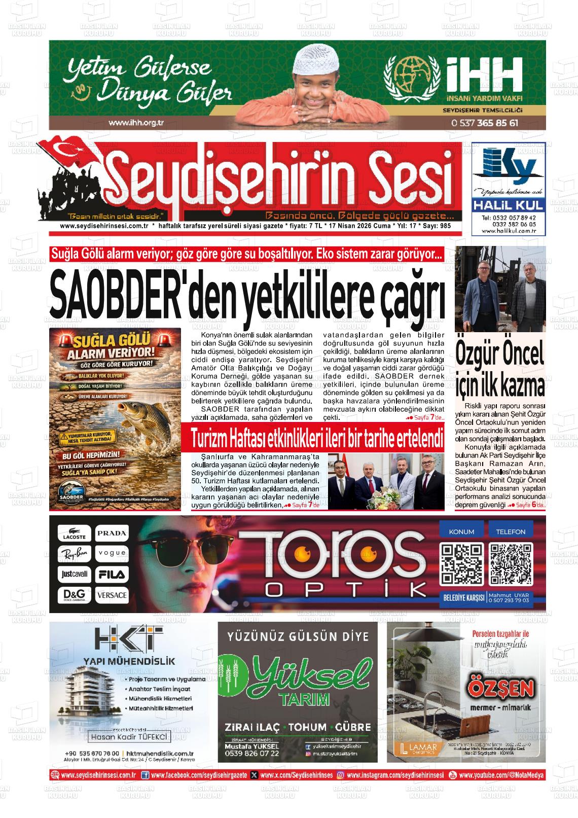 Konya Yerel Gazeteleri 17 Nisan 2026, Cuma Günü Manşeti