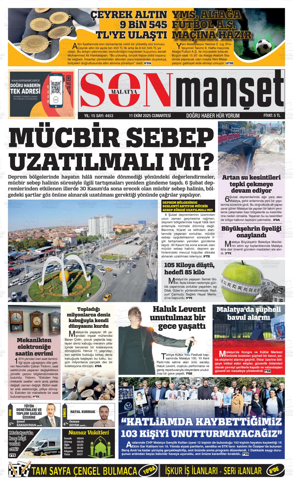 Malatya Yerel Gazeteleri 17 Nisan 2026, Cuma Günü Manşeti