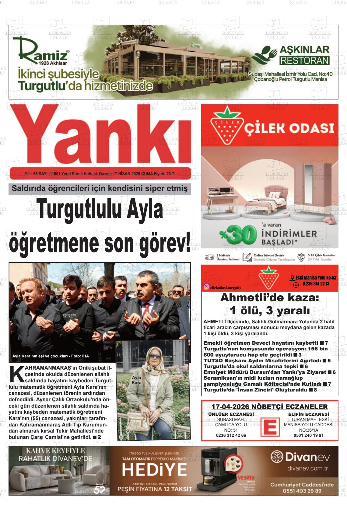 Manİsa Yerel Gazeteleri 17 Nisan 2026, Cuma Günü Manşeti